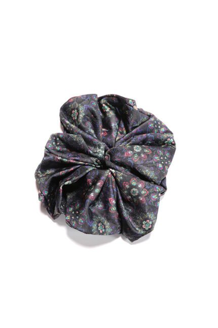 Twilight Damask Black Satin Round Scrunchie Jacquard Gothic