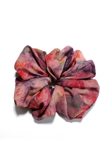 Silk Blossom Satin Round Scrunchie Painterly Floral, Matte