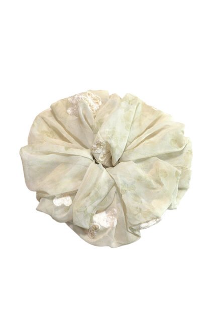 • Alluring Antique Bloom White Cotton Round Scrunchie Floral Alluring Antique Bloom White Cotton Round Scrunchie Floral